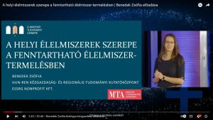 Benedek Zsófia biológus, közgazdász a Magyar Tudományos Akadémia tudományünnepen tartott előadást (amelyet itt lehet megnézni) a helyi élelmiszerek szerepéről a fenntartható élelmiszer-termelésben.