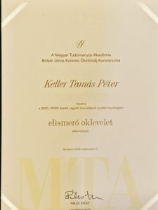 A kiemelkedő szakmai minősítéssel záró ösztöndíjasoknak idén is Bolyai Emléklapot adományoztak, az ELTE KRTK kutatói közül ezt az elismerést Keller Tamás és Horváthné Barsi Boglárka – a Regionális Kutatások Intézete tudományos munkatársa – kapta a 2021-2024 között elvégzett kiemelkedő kutatói munkájáért.