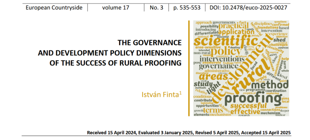 Faced with different problems and growth opportunities, regions pose challenges for national central governments and even for the European Union as a whole, requiring the development of area-sensitive interventions such as rural proofing. Due to the relative novelty of this method, many questions remain unclear either in terms of the effectiveness of practical application or in terms of exploring deeper scientific connections. One of the aims of the study – with the help of literature and policy sources – was to clarify the foundations of this method in scientific disciplines, while the main objective of the others, relying largely on empirical experience, was to enumerate the conditions for successful application, which could shed new light on the governance and development policy mechanisms that are essential elements of rural proofing. The study points out that rural proofing can be successful not only in rural areas, as this method is based on differentiated interventions tailored to local needs, which can also be effective in non-rural areas. The relevance of the topic, both from a scientific and practical point of view, is not only confirmed by recent commitments at EU level (legislative programme, Long Term Vision for Rural Areas), but also by the fact that more and more countries and more and more research are dealing with the possibility of introducing rural proofing. The findings are not intended to close issues, but to shed new light on this approach, which will contribute to further scientific debates and the development of a much more effective central-territorial intervention mechanism.
