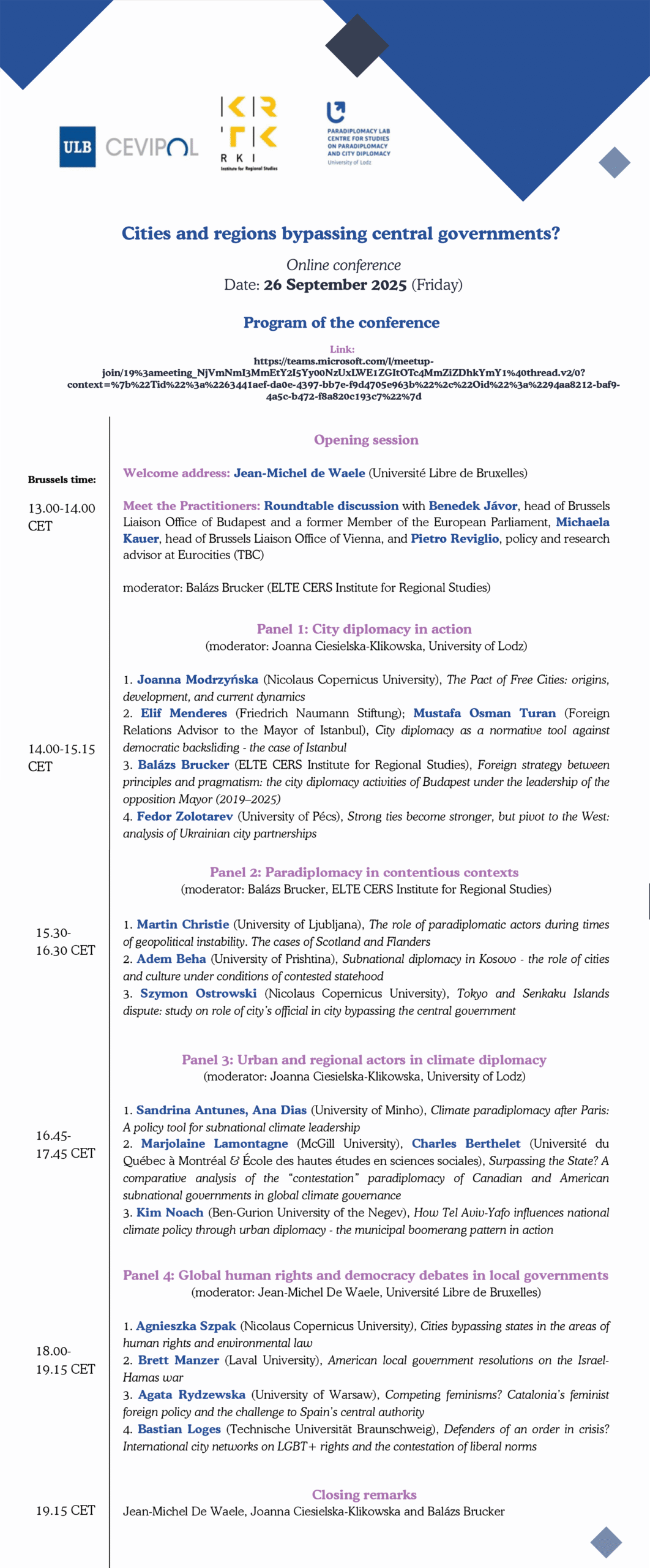 Online conference in 26 September  2025 ‘Cities and regions bypassing central governments?’